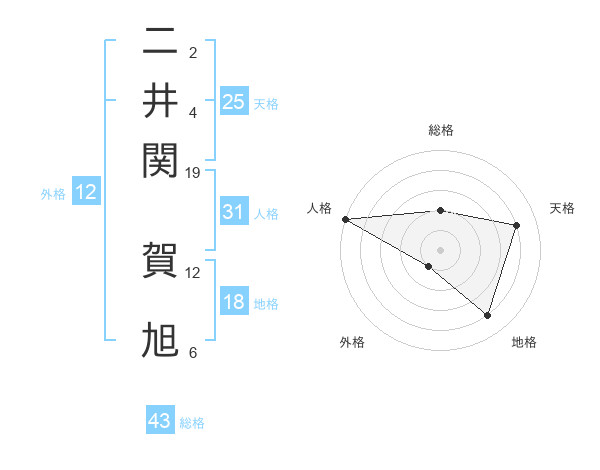 二井関 賀旭さんを姓名の画数から五運を鑑定