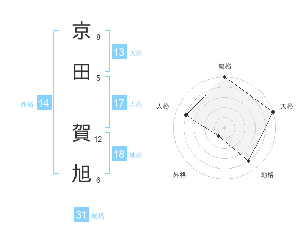 京田 賀旭さんの総格は31画の5点!