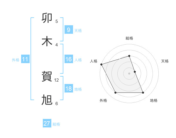 卯木 賀旭さんの総格は27画の3点!