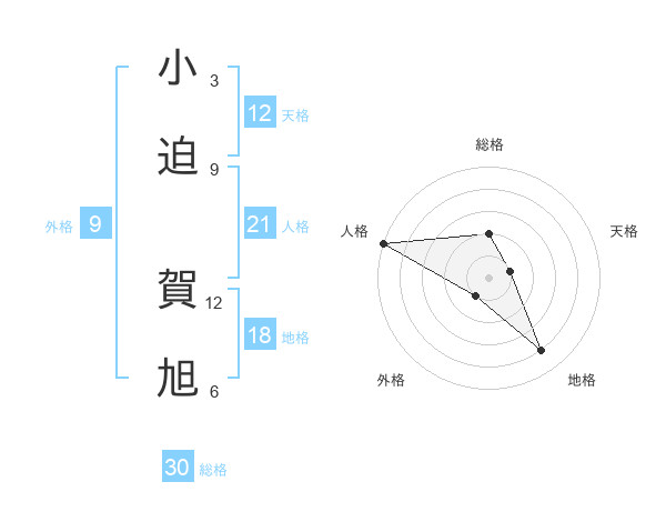 小迫 賀旭さんの総格は30画の2点!