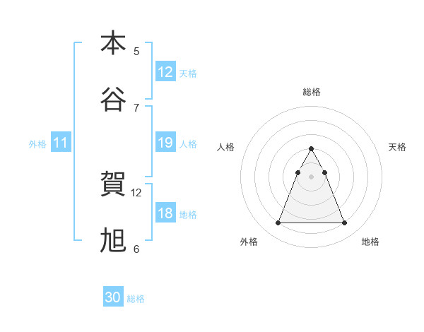 本谷 賀旭さんの総格は30画の2点!
