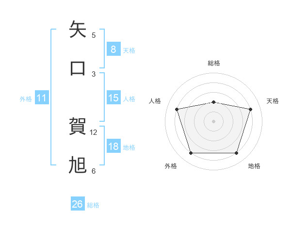 矢口 賀旭さんの総格は26画の2点!