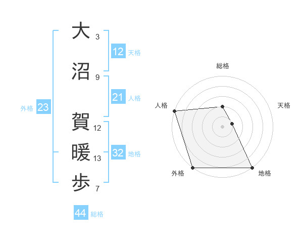 大沼 賀暖歩さんを姓名の画数から五運を鑑定