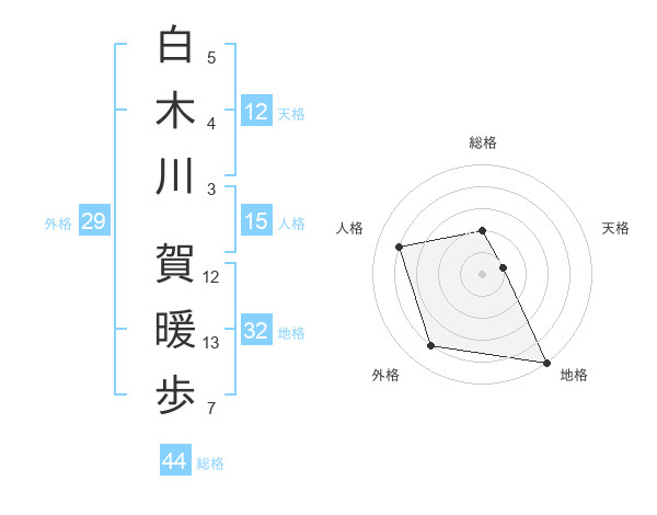 白木川 賀暖歩さんを姓名の画数から五運を鑑定