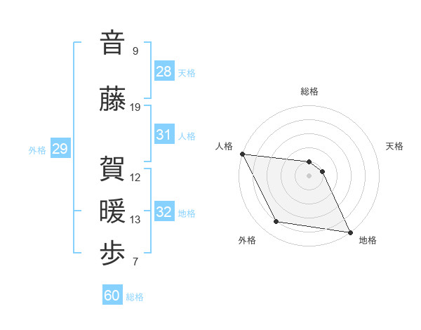 音藤 賀暖歩さんの総格は60画の1点!