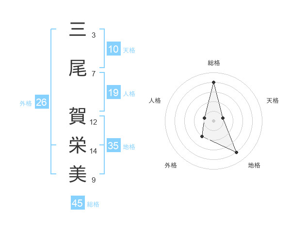 三尾 賀栄美さんの総格は45画の4点!