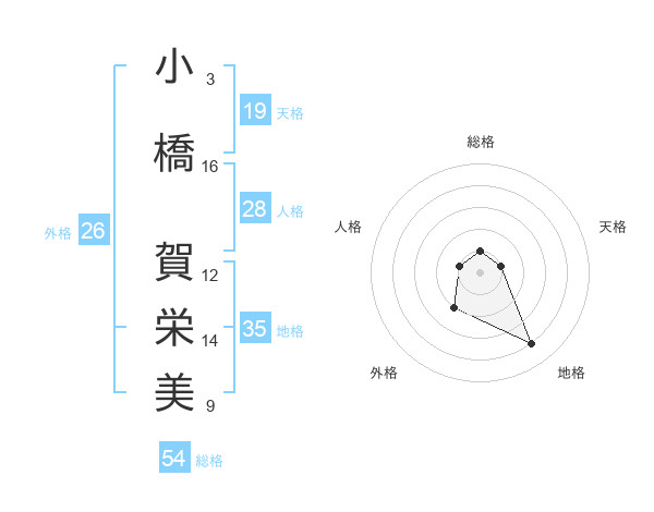 小橋 賀栄美さんの天格は19画の1点!