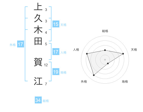 上久木田 賀江さんを姓名の画数から五運を鑑定