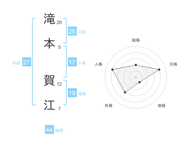 滝本 賀江さんを姓名の画数から五運を鑑定