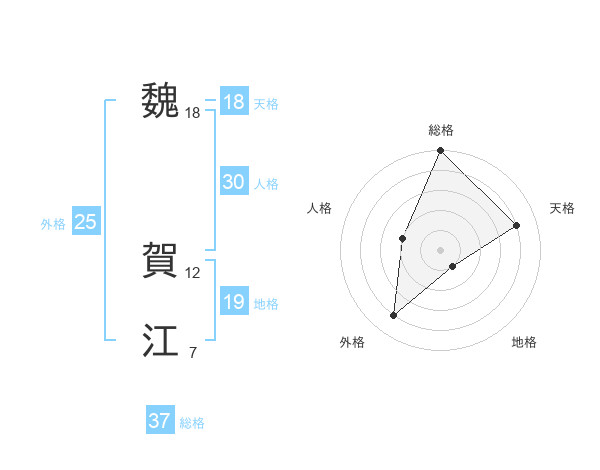 魏 賀江さんの総格は37画の5点!