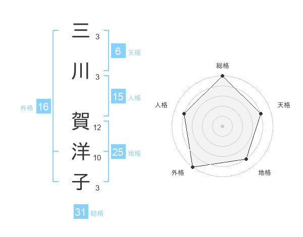 三川 賀洋子さんの総格は31画の5点!
