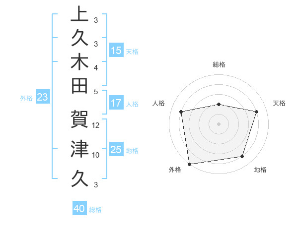 上久木田 賀津久さんを姓名の画数から五運を鑑定