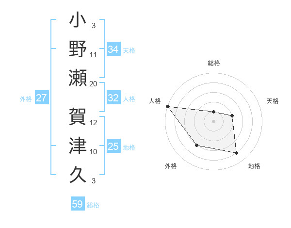 小野瀬 賀津久さんを姓名の画数から五運を鑑定