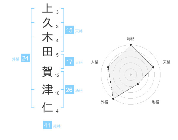 上久木田 賀津仁さんの外格は24画の5点!
