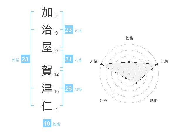 加治屋 賀津仁さんを姓名の画数から五運を鑑定