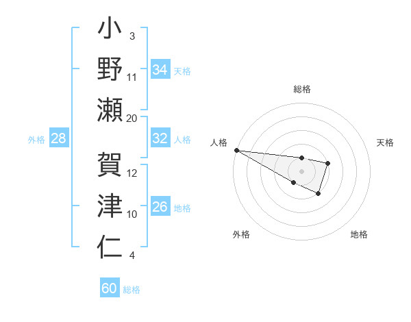 小野瀬 賀津仁さんを姓名の画数から五運を鑑定