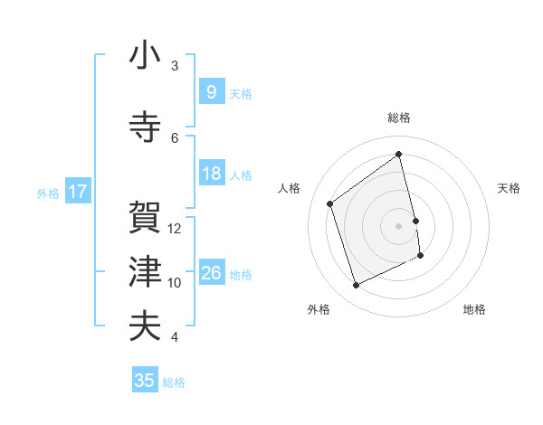 小寺 賀津夫さんの総格は35画の4点!