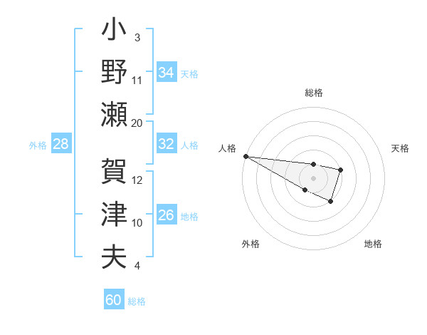 小野瀬 賀津夫さんを姓名の画数から五運を鑑定
