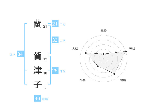 蘭 賀津子さんを姓名の画数から五運を鑑定