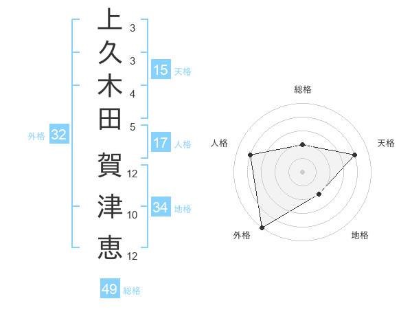 上久木田 賀津恵さんを姓名の画数から五運を鑑定
