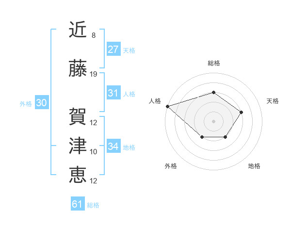 近藤 賀津恵さんを姓名の画数から五運を鑑定