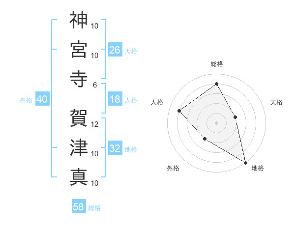 神宮寺 賀津真さんを姓名の画数から五運を鑑定