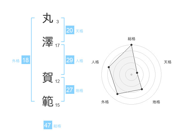 丸澤 賀範さんの総格は47画の5点!
