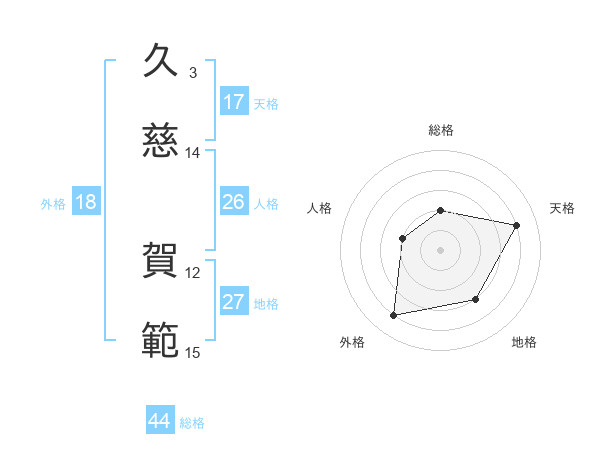 久慈 賀範さんを姓名の画数から五運を鑑定