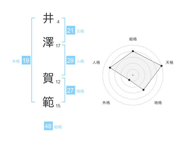 井澤 賀範さんを姓名の画数から五運を鑑定