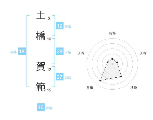 土橋 賀範さんを姓名の画数から五運を鑑定
