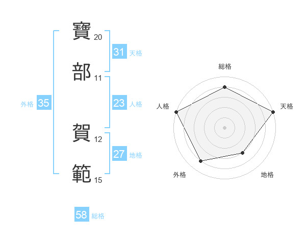寶部 賀範さんの天格は31画の5点!