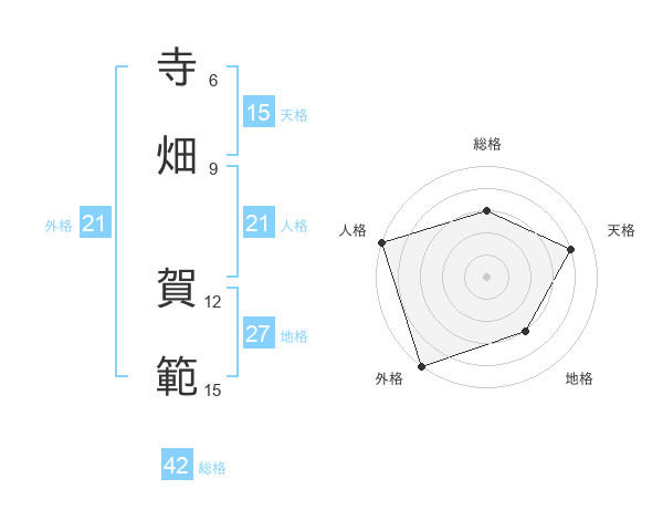 寺畑 賀範さんの外格は21画の5点!