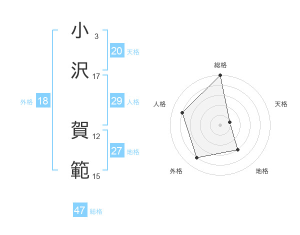 小沢 賀範さんを姓名の画数から五運を鑑定