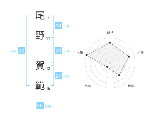 尾野 賀範さんの人格は23画の5点!