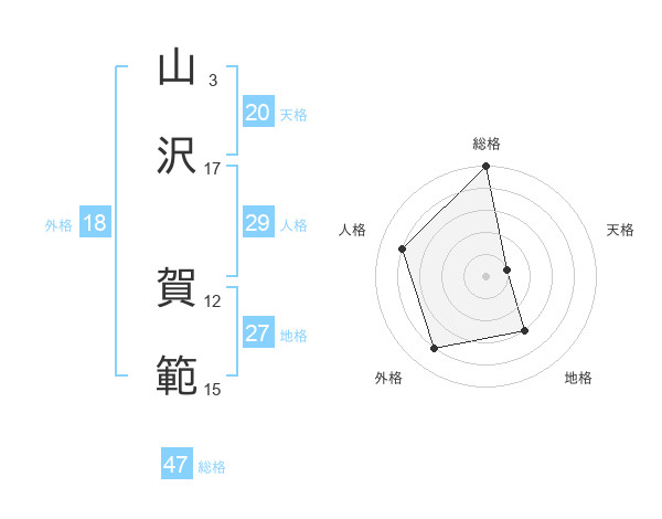 山沢 賀範さんの総格は47画の5点!