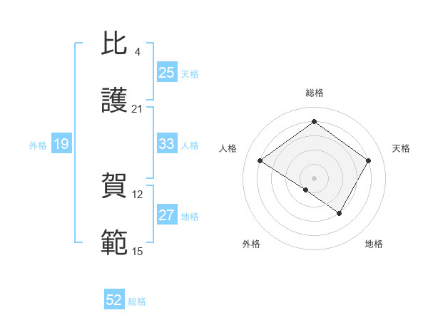 比護 賀範さんの総格は52画の4点!