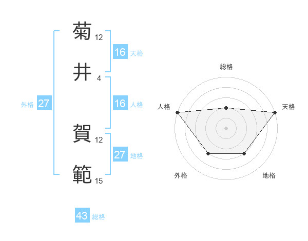 菊井 賀範さんの天格は16画の5点!