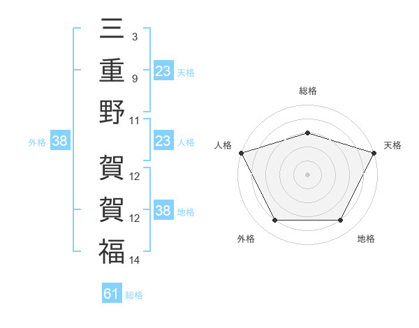 三重野 賀賀福さんを姓名の画数から五運を鑑定