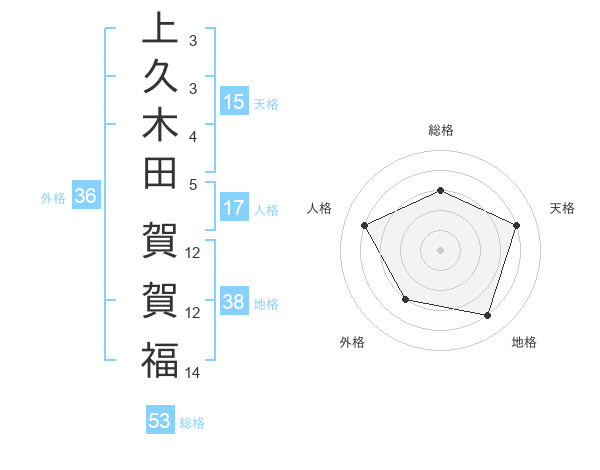 上久木田 賀賀福さんの総格は53画の3点!