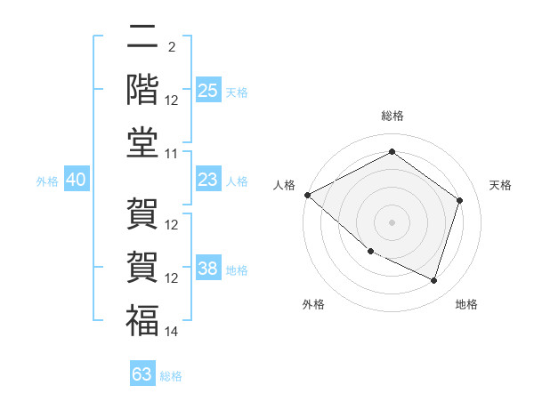 二階堂 賀賀福さんを姓名の画数から五運を鑑定