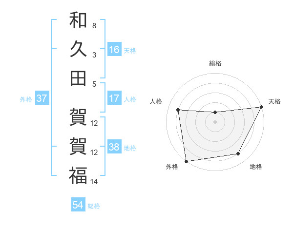 和久田 賀賀福さんを姓名の画数から五運を鑑定