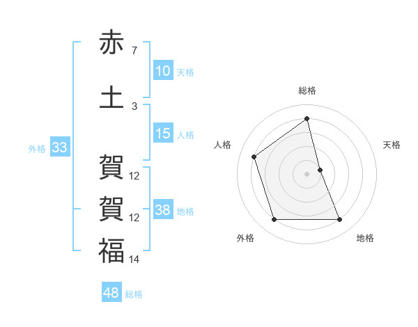 赤土 賀賀福さんの地格は38画の4点!