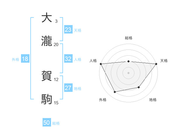 大瀧 賀駒さんの天格は23画の5点!