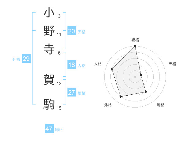 小野寺 賀駒さんを姓名の画数から五運を鑑定