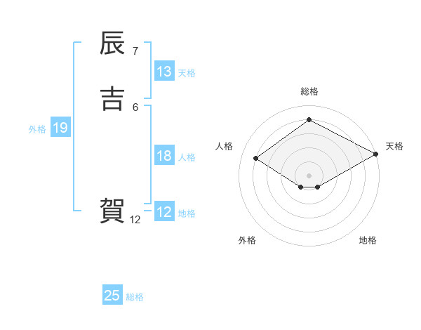 辰吉 賀さんの天格は13画の5点!