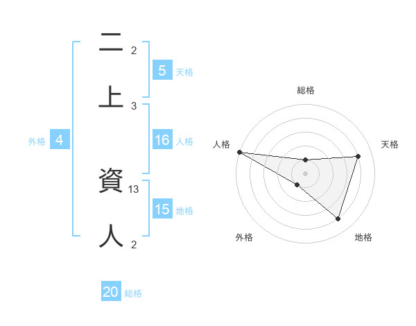 二上 資人さんの総格は20画の1点!