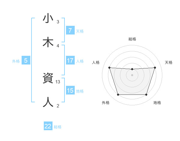 小木 資人さんの総格は22画の1点!