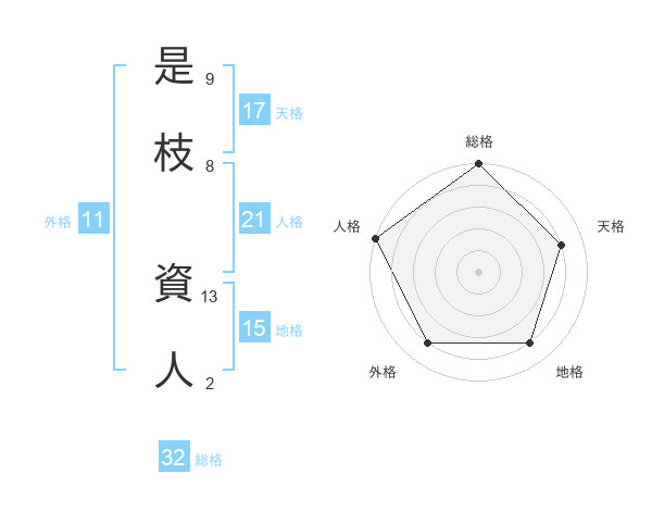 是枝 資人さんの総格は32画の5点!