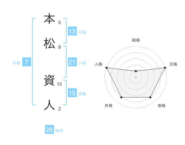 本松 資人さんの天格は13画の5点!