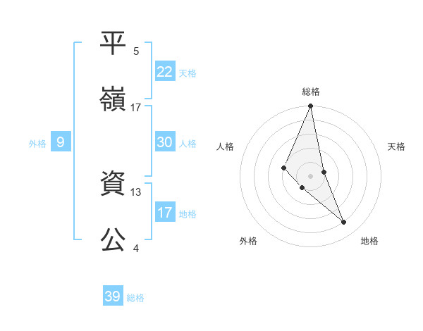 平嶺 資公さんの総格は39画の5点!